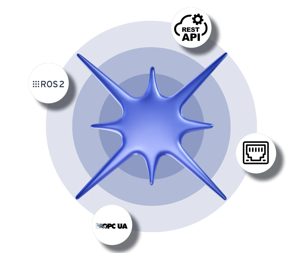 Compass is designed to be independent of the robot it is installed on. Communication with the vehicle takes place via standard buses (Ethernet, USB, serial) and protocols such as OPC-UA, ROS2, and REST APIs.